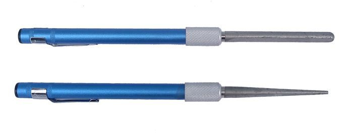 Univerzální oboustranný diamantový ostřič, ideální k ostření kopytních nožů. Skladem je pouze ve žluté barvě! Obrázek s výrobkem v modré barvě je pouze orientační!