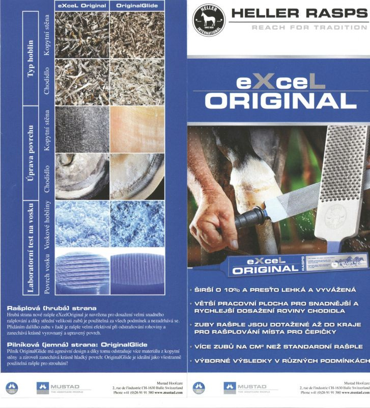 Pilníková strana : pilník OriginalGlide má agresivní design a díky tomu odstraňuje více materiálu z kopytní stěny a zároveň zanechává hladký povrch.