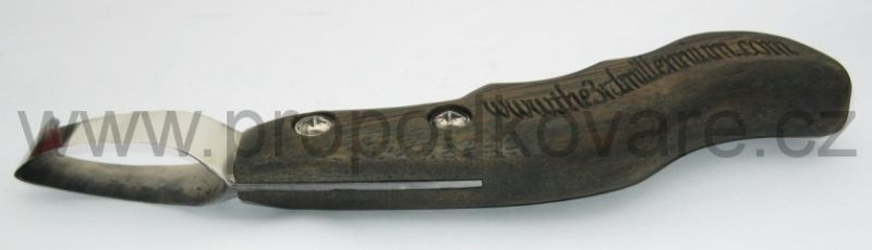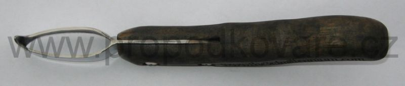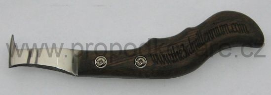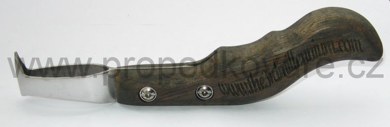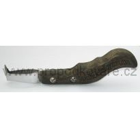 Kopytní nůž očko s extrémně ostrým ostřím. Díky použité oceli vydrží velmi dlouho ostrý a není ho třeba často brousit. Nůž má naostřený háček na čištění nebo na jemnou práci v chodidle.