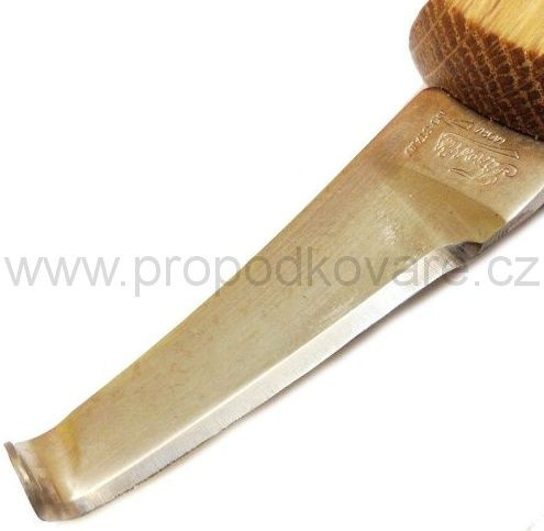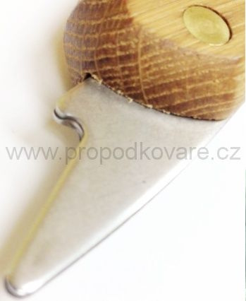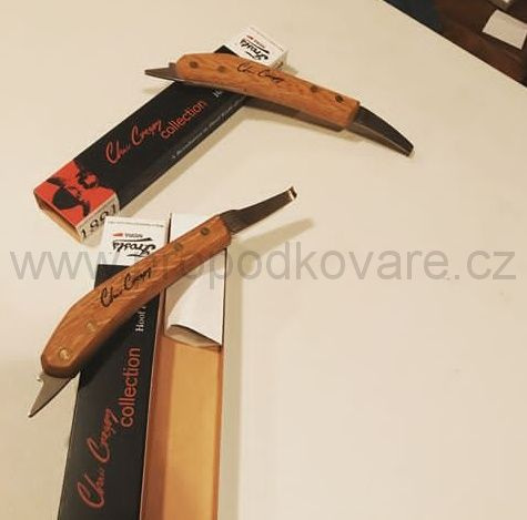 - Zahnutí háčku na konci ostří nože je optimální pro použití při podseknutí nýtů a zároveň má dostačující rádius pro strouhání, zároveň zabraňuje nežádoucímu zaříznutí do tkáně kopyta, kde je to nežádoucí