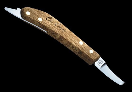 Podkovářský nůž navržený americkým podkovářským mistrem Chrisem Gregory a vyráběný na zakázku ve Švédsku firmou Frost.