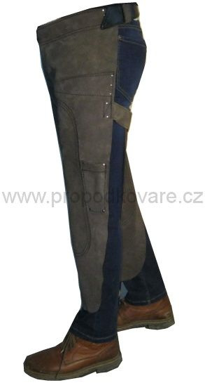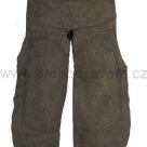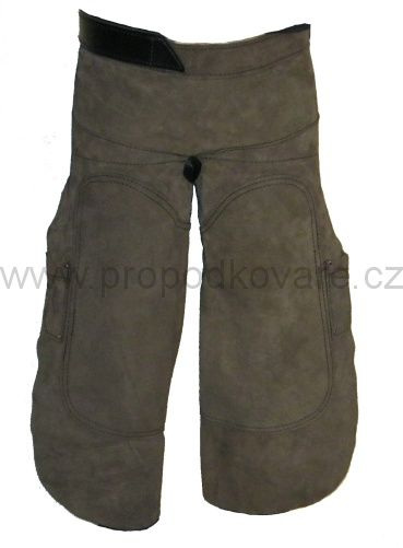 Kožená podkovářská zástěra. Je dostatečně trvanlivá, pevná a komfortní. Má 2 kapsy na nože. Zapínání kolem pasu dlouhým řemenem na kovovou sponu a suchý zip. Na stehnech je dvojitá vrstva kůže k zajištění zvýšené ochrany. Zapínání kolem stehen páskem na suchý zip.