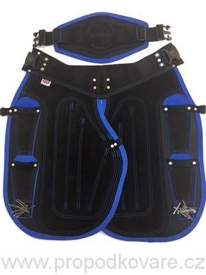 Krátká podkovářská zástěra je vyrobena z kombinace kvalitní kůže a syntetické odolné textile.