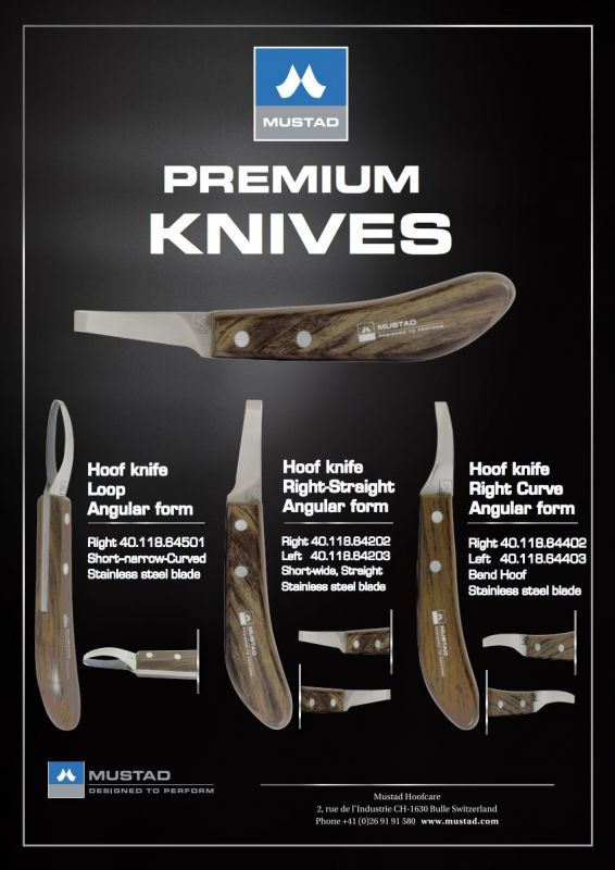 Představujeme novou řadu kopytních nožů Mustad Premium. Celou sérii nožů navrhovali podkováři pro podkováře a prodělala celou řadu kvalitativních testů s vynikajícími výsledky.